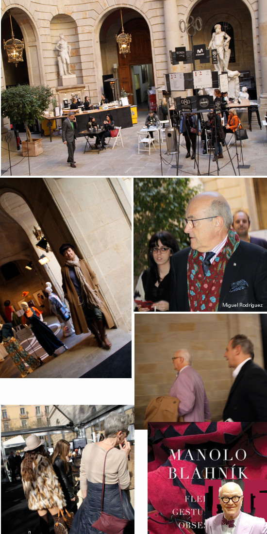 Hoy, sin duda, ha sido el día del diseñador de zapatos canario Manolo Blahnik, que ha presentado su libro Manolo Blahnik: Fleeting Gestures and Obsessions. Libro que cuenta con contribuciones de Pedro Almodóvar, Mary Beard, Eric Boman, Sofía Coppola y Andre Leon Talley. La presentación ha sido seguida de un coloquio durante el cual el conseller de Empresa y Conocimiento de la Generalitat de Catalunya, Jordi Baiget, le ha entregado una ‘chimenea’ de Gaudí como homenaje del Govern a su trayectoria y su aportación al mundo de la moda. Al ser preguntado sobre si conocía Catalunya y sus diferencias, Blahnik ha dicho que él seguía su vida sin preocuparse ni de Catalunya, ni de Rusia, ni otros países, y que hasta ahora le había ido bien. También ha puesto de manifiesto que no le gustan los desfiles y que se tendría que hacer algo para que resultaran más interesantes.