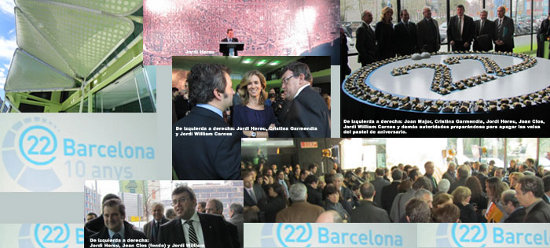 Durante el acto se ha presentado el nuevo logo del distrito 22@ y las autoridades asistentes han apagado las dos velas que indicaban los 10 años transcurridos desde el comienzo del proyecto. El pastel estaba formado por múltiples platitos con un trozo de pastel formando el signo de 22@.