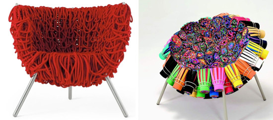 Sillas, alfombras, sofás, muebles, los hermanos Campana construyen objetos inspirándose en paisajes, lugares, mercados populares, objetos y materiales que encuentran explorando ciudades y pueblos de su país.