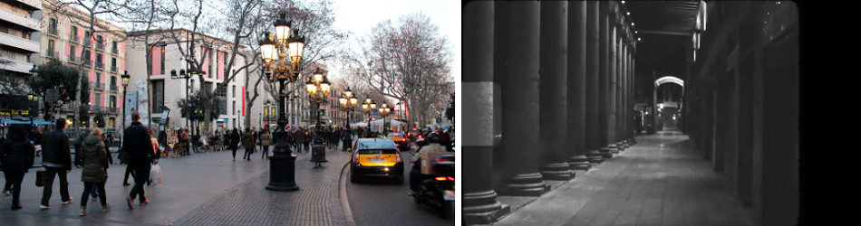 La Rambla de noche y La Rambla con figura: fotogramas del vídeo de presentación del Festival