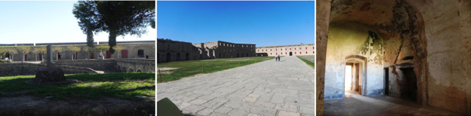Los establos podían albergar quinientos caballos con sus jinetes y alrededor de su extensa plaza de armas se distribuyen alojamientos para autoridades y oficiales, una iglesia, un hospital, un arsenal y una panadería.