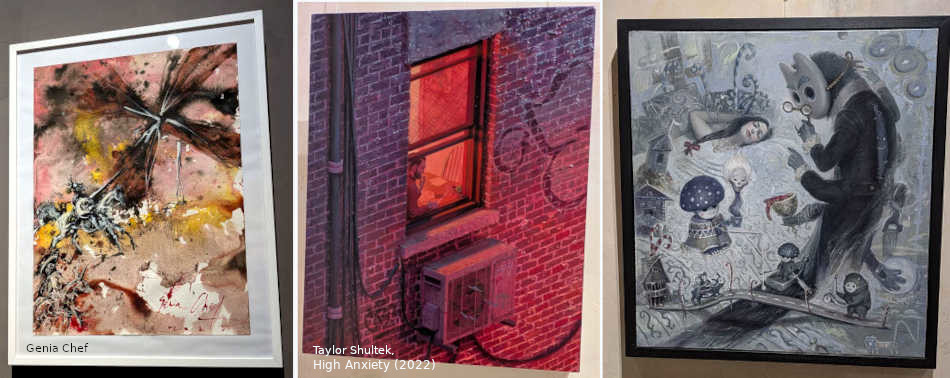 Sirvan como ejemplos los trabajos presentados por Giovanni Gasparro, un italiano de Bari, pintor, grabador y escenógrafo, que presenta su ‘Processo alle intenzioni’ (2021); Lita Cabellut, famosa por su innovadora técnica del craquelado, aporta ‘Trilogy of Doubt 07’ (2012); o Taylor Shultek, una estadounidense de Minessota que reside en Brooklyn, nos muestra su visión del entorno con ‘High Anxiety’ (2022).
