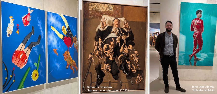 Martín Barbero, argentino residente en Barcelona aplica métodos académicos clásicos en su pintura ‘Autorretrato’ (2025); Guennadi Ulibin y su hiperrealismo distópico de ‘Los Diarios de los Jinetes del Apocalipsis’ (2019), o el propio Jordi Díaz Alamà, con su ‘Retrato de Adrià’.