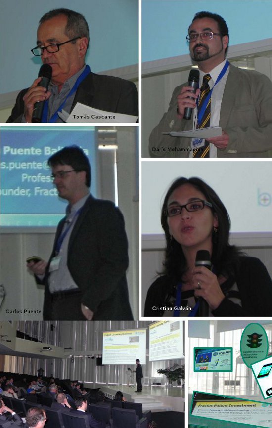 A continuación, Carlos Puente, Profesor de la UPC y Director Científico de FRACTUS, S.A. (www.fractus.com) ha empezado su exposición presentando a su empresa, especializada en el desarrollo de productos inalámbricos en general, basados en la tecnología de geometría de fractales. La decisión que la empresa tomó en su momento de patentar a nivel internacional sus nuevos productos, les ha servido para desarrollar esta faceta de sus actividades y así comercializar sus licencias de propiedad industrial. Se ha extendido en las distintas fases de la gestión: solicitud de la patente provisional, diseño, especificaciones, investigaciones técnicas y de mercado… En la actualidad la licencia de patentes representa una parte muy importante de su actividad.