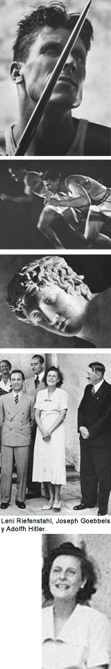 Su siguiente obra importante como directora fue el documental de más de cuatro horas de duración Olympia (Parte I Festival de las Naciones y Parte II Festival de la belleza, 1938), en la que filmó los Juegos Olímpicos de Berlín 1936, conocidos como las Olimpiadas de Hitler. Verdadero hito cinematográfico ya que nunca antes se habían filmado unos JJ. OO.