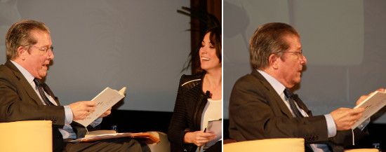 Ha traído con él un volumen para regalárselo a Lídia Heredia, la cual le ha instado a que nos leyera uno de ellos. Después de la emocionante lectura ha sido muy aplaudido y felicitado por los asistentes.