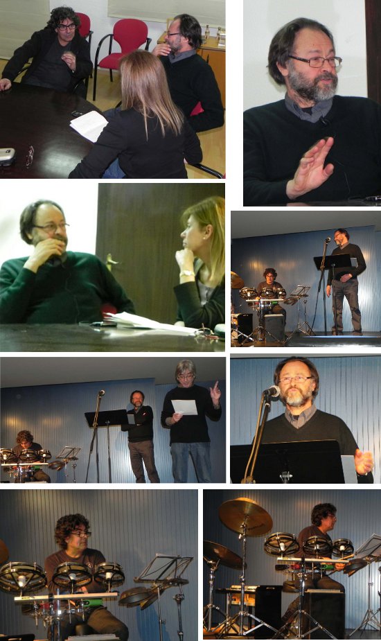 En el recogido auditorio de la Casa América, ha tenido lugar la presentación de un proyecto singular. Gabriel A. Jacovkis presentaba su último libro de poemas, y lo ha hecho acompañado por Quicu Samsó, autor del CD que complementa el volumen. Después de la cordial entrevista que ambos han concedido a 39ymas, ha dado comienzo el acto en el que el poeta ha leído una selección de su obra, a la vez que el músico iba intercalando la percusión, estableciéndose un diálogo, una fusión, entre la palabra y el sonido, entre la música y la poesía, de tal modo que los asistentes hemos podido percibir sílaba a sílaba y nota a nota el resultado de esa fructífera asociación y del buen hacer de sus artífices para llegar a “esa mirada que pasea entre recuerdos, presentes, deseos, sueños, algunos amores dichos, otros callados..” . Ver entrevista.