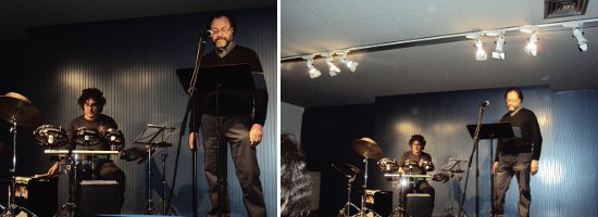 Q. S ¡Uf! Es algo que tenia ganas de hacer, pero nunca acabas de decidirte. Yo le propuse a Gabriel acompañar la poesía con percusión. «Dibujar» la poesía con sonido. El proceso llevó a un diálogo que ha resultado largo. Con las grabaciones no tiene nada que ver. El directo es mucho más rico, más apretado. Hemos estado trabajando y hablando, pero no para buscar algo, sino que lo que ha resultado es esto. No nos hemos inspirado en nadie. Es algo que nos ha complacido hacer a los dos y lo hemos hecho realidad, y nos lo hemos pasado muy bien.