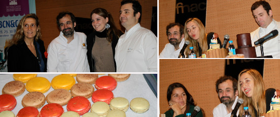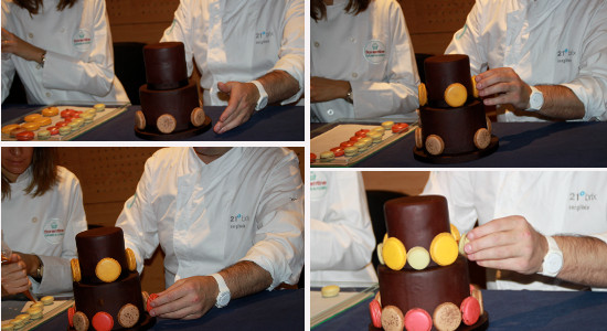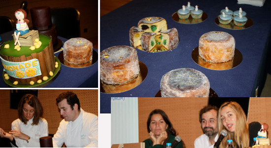 Los tres profesionales han hecho una demostración de cómo las tres áreas, la panadería, la pastelería tradicional y la pastelería angloamericana pueden colaborar y elaborar sorprendentes creaciones como pan relleno de cupcakes y pastel de fondant de chocolate decorado con macarons de menta, fresa y mango.