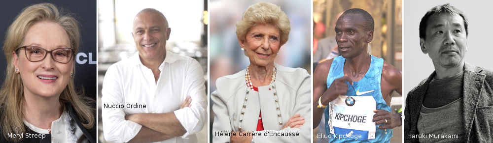 A la historiadora francesa Hélène Carrère d’Encausse, Premio Princesa de Asturias de Ciencias Sociales; al atleta keniano Eliud Kipchoge, Premio Princesa de Asturias de los Deportes; al escritor japonés Haruki Murakami, Premio Princesa de Asturias de las Letras; y a la Iniciativa Medicamentos para Enfermedades Desatendidas.