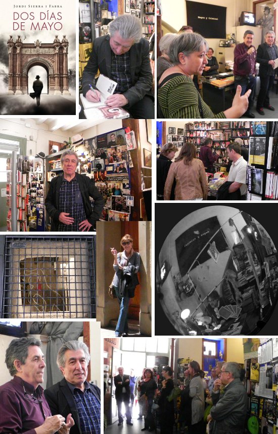 En un ambiente muy agradable, se podría decir que entre un grupo de amigos, y compartiendo una copa de vino tinto, Paco Camarasa, dueño de Negra y Criminal nos ha presentado al autor de Dos días de Mayo. Jordi Sierra i Fabra (26-07-1947), que pensó escribir una trilogía sobre los últimos días de la guerra civil española en Barcelona en forma de novela de intriga, que esta novela es la cuarta y que hay una quinta por salir.