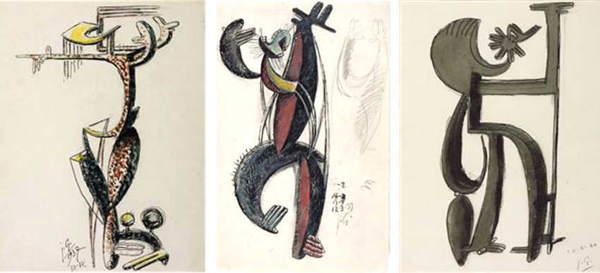 Gracias a muchos de esos dibujos podemos entender también el proceso de reducción formal o abstracción que lleva a cabo González de la figura femenina, las relaciones entre las masas y el vacío que luego se mantendrán entre las chapas de hierro, las varillas y los vanos.
