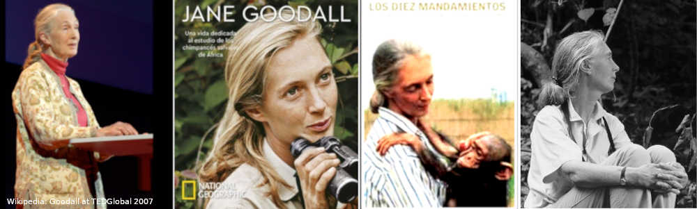 Jane Goodall: Wikipedia, Jane Godall: Por Floatjon – Trabajo propio, CC BY-SA 3.0, https://commons.wikimedia.org