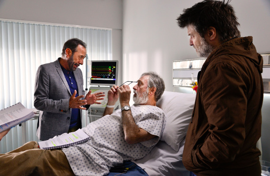 Imagen cedida por ‘A Contracorriente Films’ en la que se puede ver a Guillermo Francella y Luis Brandoni con el director Gastón Duprat