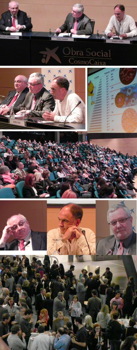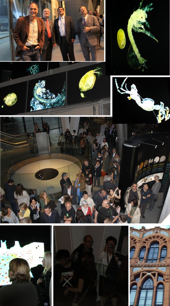 «Sus» microorganismos han desfilado, animados e inanimados, por la exposición de Cosmocaixa, que hemos visitado al final de la presentación. Allá quedan las horas de paciente observación y de trabajo callado (y no tan callado); la emoción del momento esperado, traducido en exclamaciones que jamás serán oídas, sin duda formarán parte del álbum familiar de este hombre que se ha dedicado, (no me atrevo con la cifra, dejémoslo en muchísimas horas), a una de las pasiones de su vida.