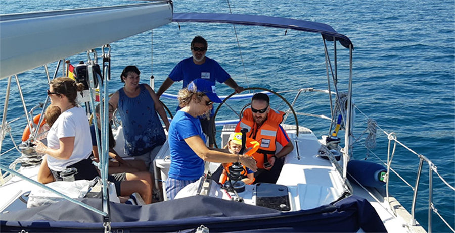 “Ella es responsable de la programación de las salidas, promoción y relación con los clientes, a los que implica en la navegación, en el grado que a ellos les interesa, y les propone navegaciones a la carta, en las que lo mismo pueden ayudar en las maniobras como estar tranquilos, relajados y disfrutando del paseo. Todas nuestras salidas son convenidas, y con patrón”.