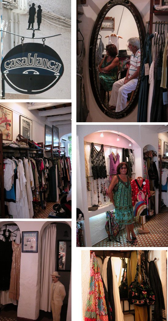 Ahora sólo queda esta Casablanca, mucho más alegre que la del cine, en pleno centro de una población a la que los romanos llamaban Subur. Allí, entre carteles de la película, porcelanas antiguas, frascos de perfume, cerámica popular y espejos se intercalan vestidos desenfadados, vaporosas blusas y chales multicolores.