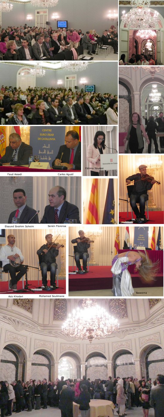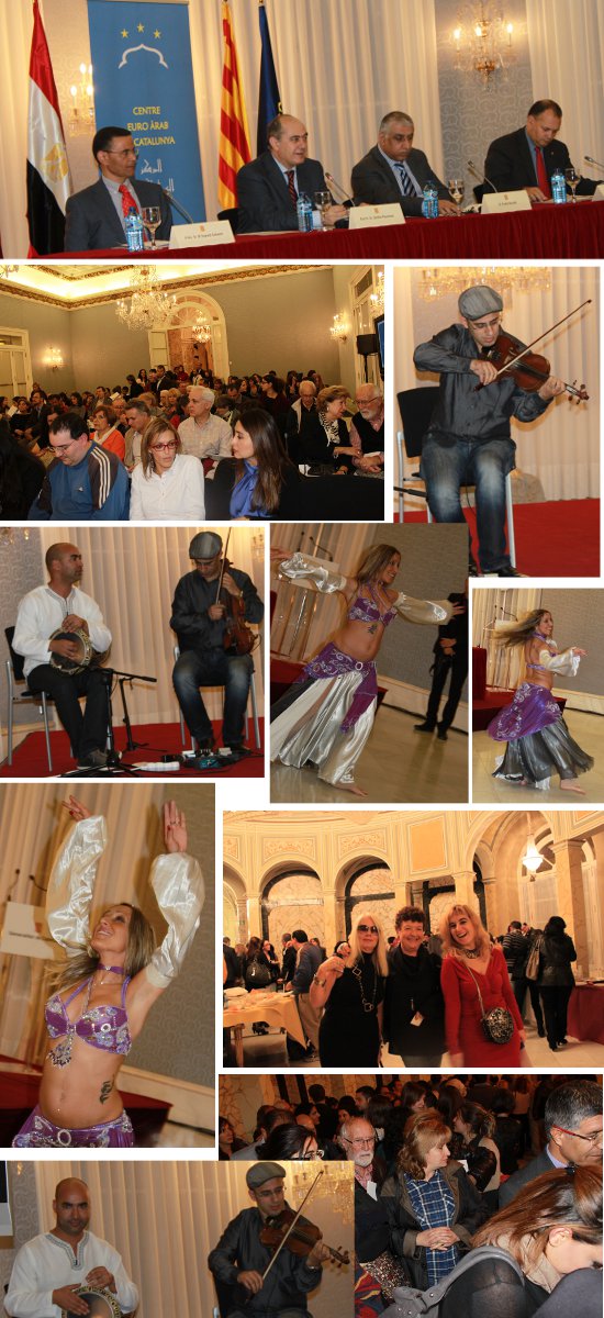 Durante la presentación han actuado Mohamed Soulimane, director de la Orquesta Árabe de Barcelona, Aziz Khodari, percusionista de la Orquesta Árabe de Barcelona y Baseema Bellydancer, directora de Barcelona Oriental Festival.
