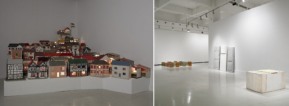 Una de sus obras: ‘Village’, se compone de 53 casas de muñecas cuidadosamente dispuestas e iluminadas desde dentro. Son objetos de segunda mano que la artista coleccionó durante veinte años y que posteriormente ha transformado. La perspectiva de la obra es asombrosa. Las casas de diferentes tamaños están situadas como si estuvieran en un valle, sobre la ladera de una colina con calles sinuosas.