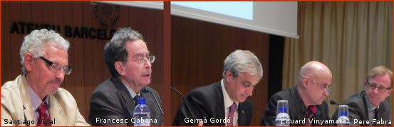 En la presentación del primer libro digital de la nueva colección “Quaderns de l’Escola de Cooperació”, apoyado por la UOC (Universitat Oberta de Catalunya), Campus per la Pau y Editorial UOC, se han  dado cita Germà Gordó, conseller de Justicia de la Generalitat de Catalunya; Pere Fabra, vicerrector de la Universitat Oberta de Catalunya; Eduard Vinyamata, director del Campus per la Pau de la UOC; Santiago Vidal, magistrado de la Audiencia Provincial de Barcelona; y Francesc Cabana, presidente del Ateneu Barcelonés.