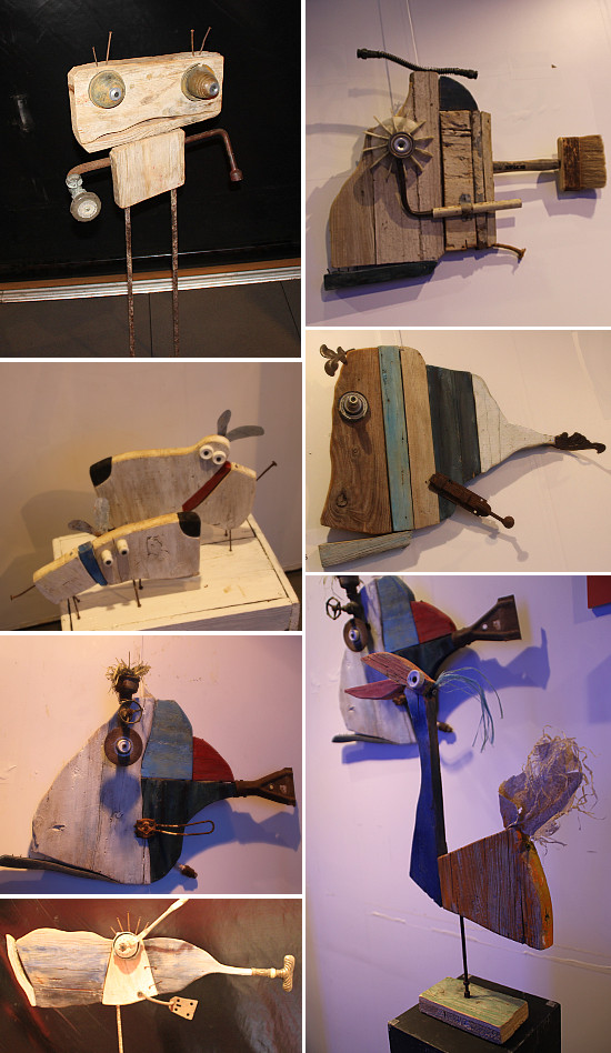 A través de la escultura, su afición al buceo, que ha practicado por todo el mundo, y su amor al mar, nos ofrece su trabajo con materiales reciclados. Da vida a materiales de desecho formando especiales y diferentes peces con un toque caricaturesco. El escultor encuentra su materia prima en los bosques que rodean su casa: maderas, plásticos, aletas, alambres, cables, piedras, andamios, tubos… objetos a los que se les llama residuos y que para él son recursos.