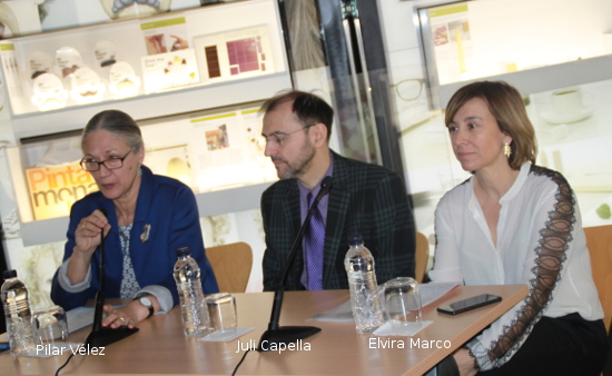 Han presentado la exposición a los diferentes medios de comunicación Pilar Vélez, directora del Museu del Disseny de Barcelona, Juli Capella, comisario de la muestra y Elvira Marco, directora general de Acción Cultural Española (AC/E).
