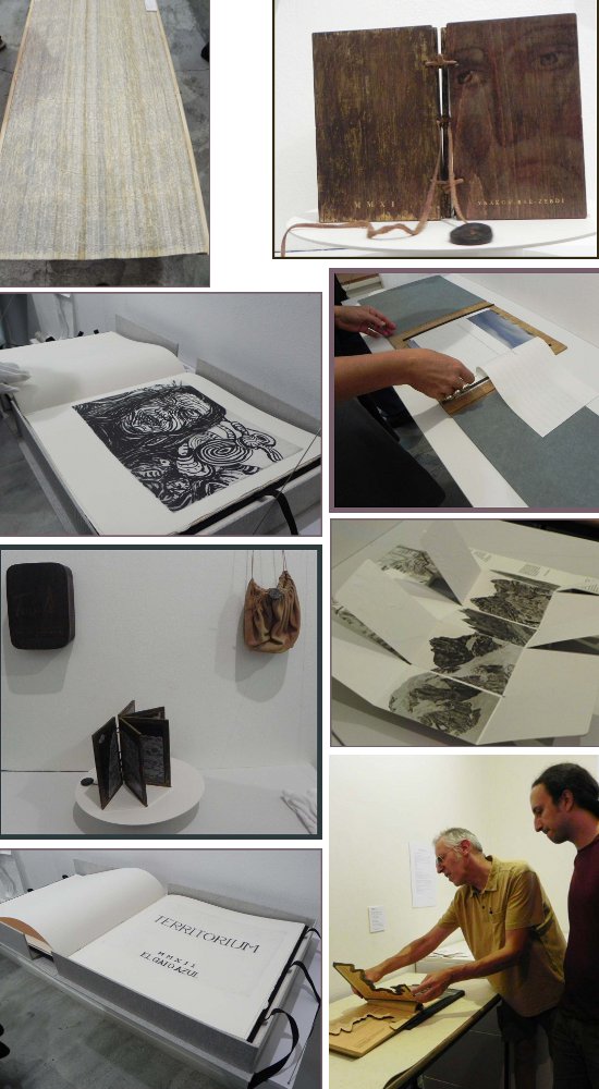 Alejandro Rodríguez y Poncho Martínez juntaron sus respectivos conocimientos sobre grabado y encuadernación para dar lugar a un libro de doce grabados calcográficos —de diferentes técnicas—, estampados sobre papel Guarro súper alfa y encuadernado al igual que su caja con telas, cartón, cinta e hilo. Su título, Territorium.