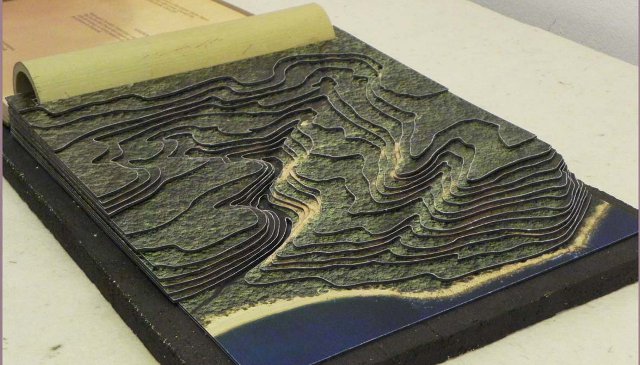 El acuerdo que en 1998 suscribieron la república de Chile y la de Argentina por el cual se precisaba el recorrido del límite desde el monte Fitz Roy hasta el cerro Daudet, ha inspirado a Javiera Pintocanales (www.pintocanales.com.es), diseñadora editorial y artista gráfica su Límite por precisar. Son grabados calcográficos al aguatinta, impresos sobre papel japonés y montados sobre soporte plegado y gofrado de papel Rosaspina de 220 gr. Los dibujos están hechos a lápiz.