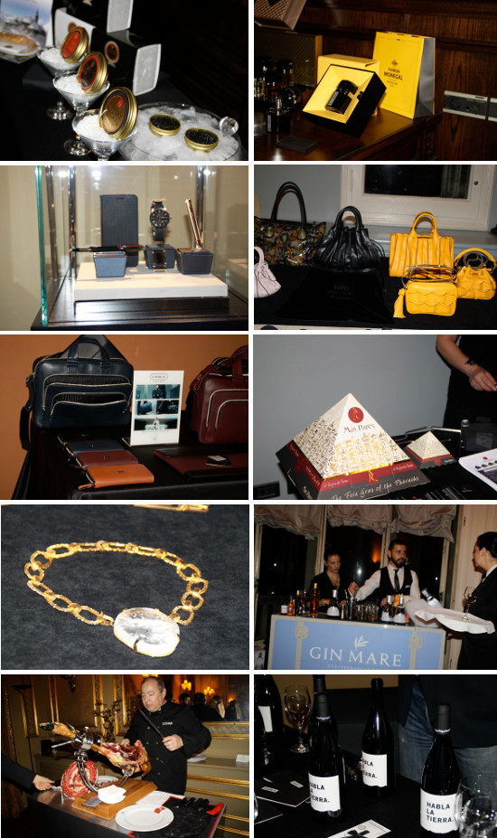 Los asistentes han podido degustar, cavas, vinos, gins, caviar, jamón, foie y salmón ofrecidos por diferentes marcas, mientras podían admirar objetos de alta gama como joyas, bolsos, zapatos, objetos de escritorio, productos cosméticos o perfumes… o informares de viajes de ensueño.