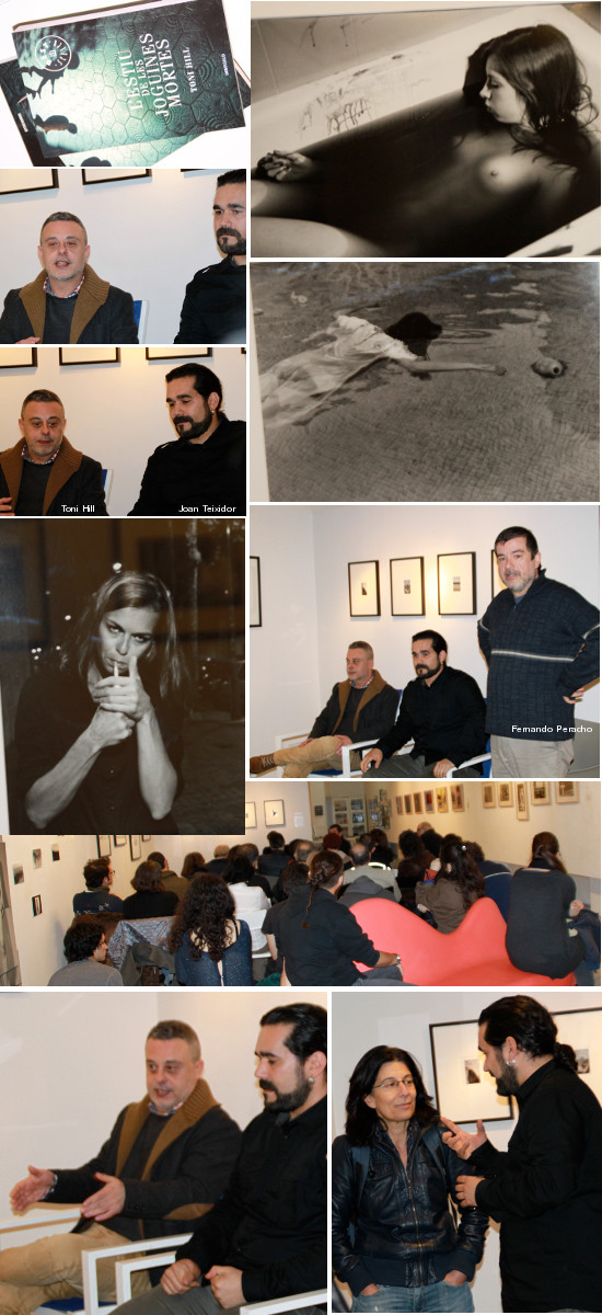 Fernando Peracho ha presentado al fotógrafo Joan Teixidor y al novelista Toni Hill, que ha dicho que, cuando le comunicaron que su novela L’Estiu de les Joguines Mortes había sido escogida para su interpretación fotográfica, se puso muy contento. “Las fotos son mucho más duras de lo que yo creía que era la novela. Teixidor ha plasmado los momentos culminantes. En esta novela quería hablar de gente normal afectada por un crimen, gente de hoy colocada en una trama criminal. Quería hablar de gente joven, el personaje más mayor tiene 40 años; barrios y ambientes de Barcelona. Es una historia donde un grupo de adolescentes querían hacer una cosa que estaba bien y usan medios terribles que se les vuelven en contra”. Toni Hill ha anunciado que pronto saldrá su última novela, cuyo título es Los amantes de Hiroshima.
