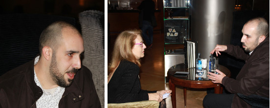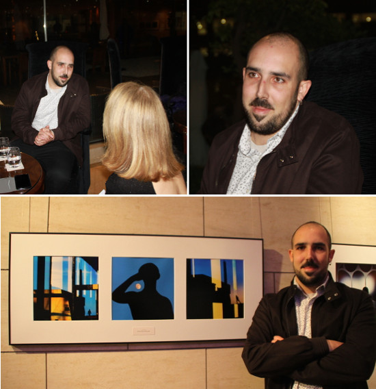 Sin haber tocado el agua mineral, nos trasladamos donde están colgadas sus fotografías para que nos las explique un poco más. Los invitados ya han empezado a llegar y le reclaman. Le felicitamos y nos retiramos a esperar la hora de la entrega del Premio. Nos alejamos mientras algunos miembros del jurado y organizadores le rodean.
