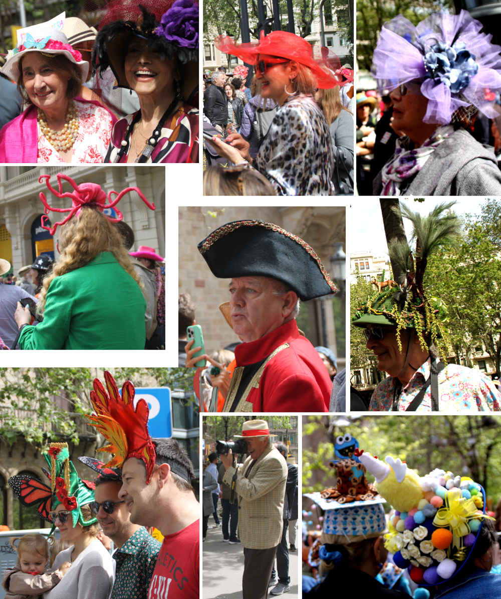 Los amantes del sombrero se reúnen en la Rambla de Catalunya / Diagonal de Barcelona, al pie de la escultura de la ‘Jirafa coqueta’. Los paseantes con sombrero tienen la oportunidad de ‘quedar para la posteridad’ en el Photocall, colocado para ello.